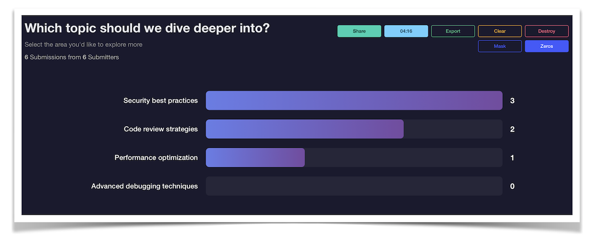Live Presentations: Maintain audience engagement during technical presentations and live demonstrations with real-time polls and questions.
